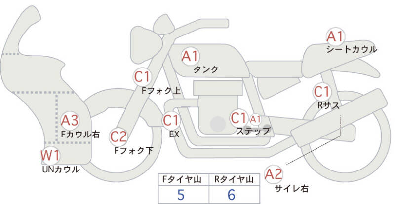| Обтекатель сиденья | царапина <1> |