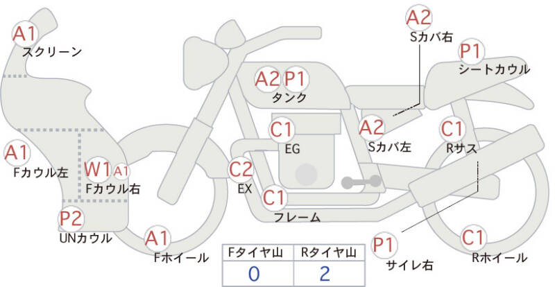 Красным маркером на схеме отмечаются места косметических повреждений.
