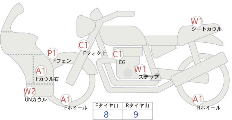 Красным маркером на схеме отмечаются места косметических повреждений.