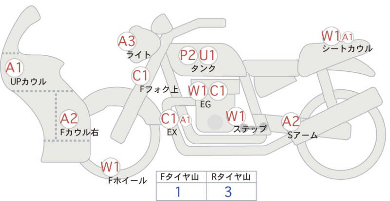 Красным маркером на схеме отмечаются места косметических повреждений.