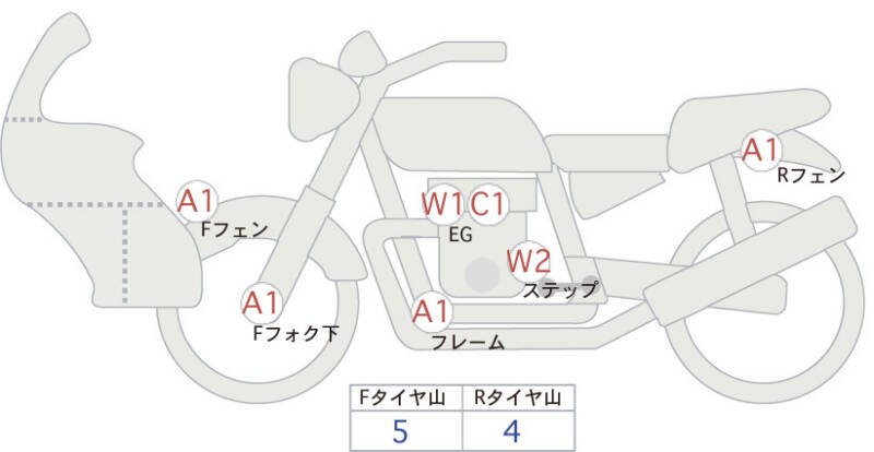 Красным маркером на схеме отмечаются места косметических повреждений.