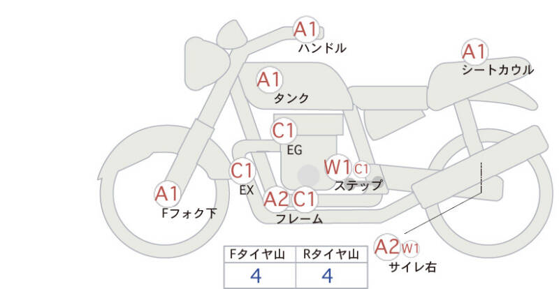 Красным маркером на схеме отмечаются места косметических повреждений.