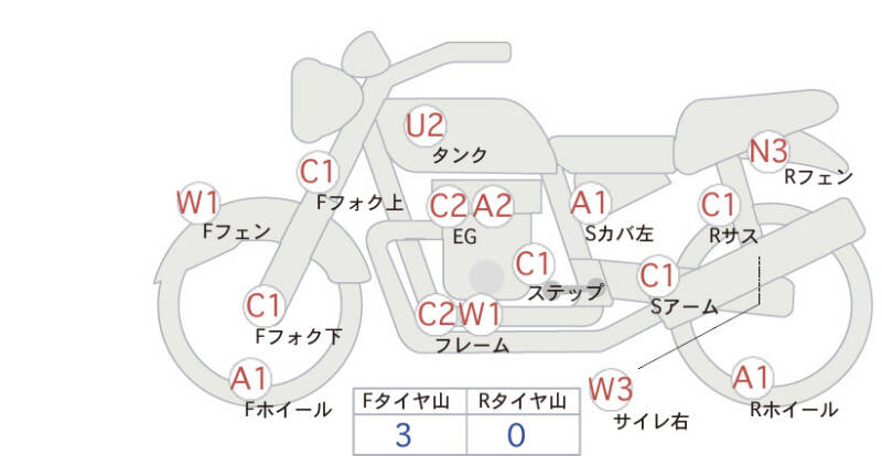 | Переднее колесо | царапина <1> |