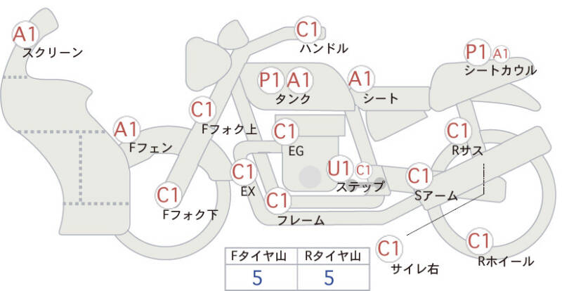 | Обтекатель сиденья | царапины, необходима подкраска <1>; царапина <1> |