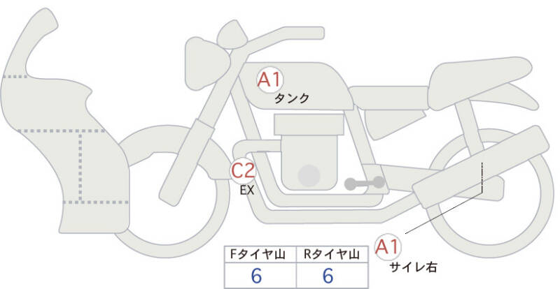 Красным маркером на схеме отмечаются места косметических повреждений.