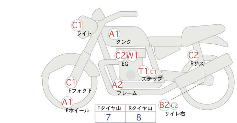 Красным маркером на схеме отмечаются места косметических повреждений.