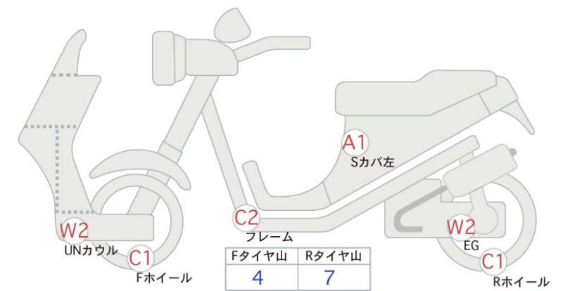 Красным маркером на схеме отмечаются места косметических повреждений.