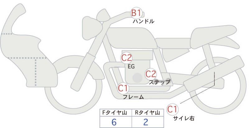 Красным маркером на схеме отмечаются места косметических повреждений.