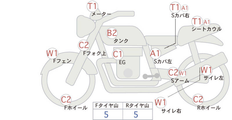Красным маркером на схеме отмечаются места косметических повреждений.