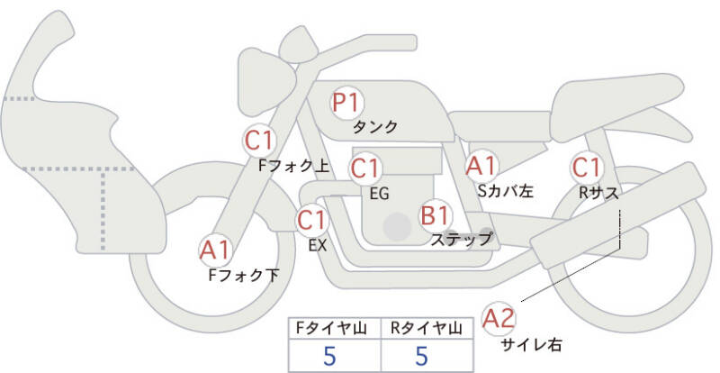 Красным маркером на схеме отмечаются места косметических повреждений.