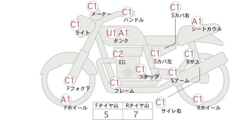 | Обтекатель сиденья | царапина <1> |