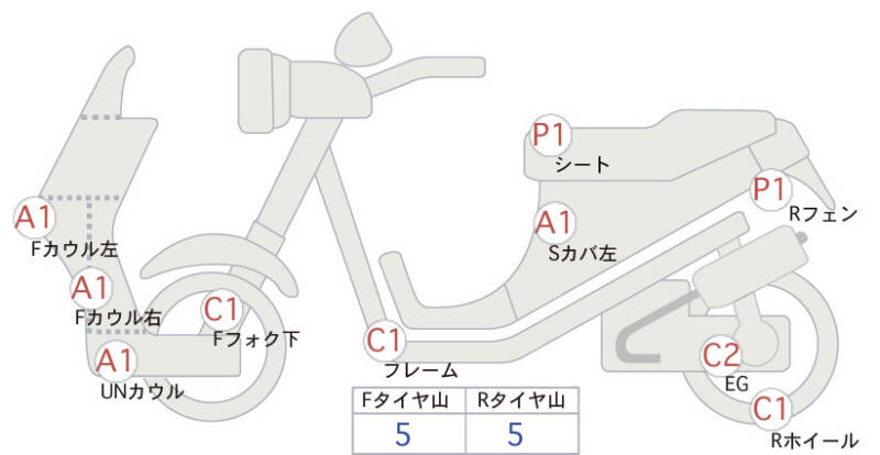 | Сиденье | царапины, необходима подкраска <1> |