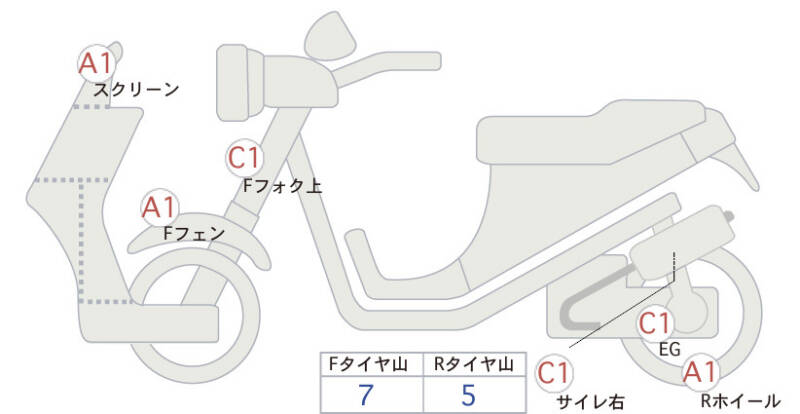 | Переднее крыло | царапина <1> |
