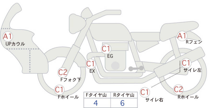 Красным маркером на схеме отмечаются места косметических повреждений.