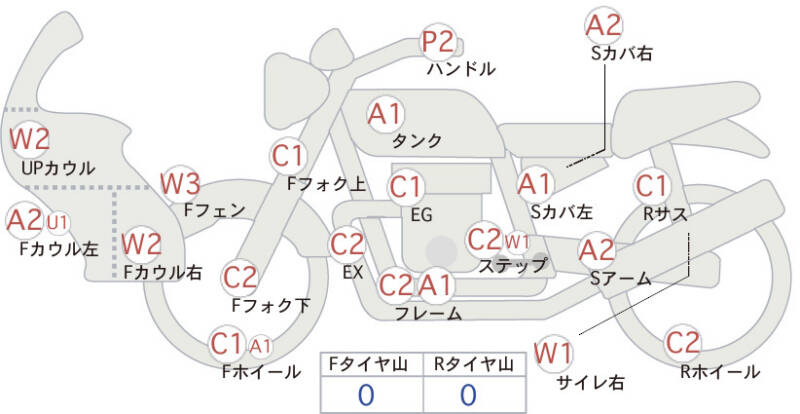 Красным маркером на схеме отмечаются места косметических повреждений.