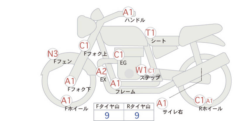 Красным маркером на схеме отмечаются места косметических повреждений.