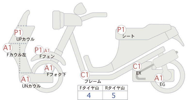 Красным маркером на схеме отмечаются места косметических повреждений.