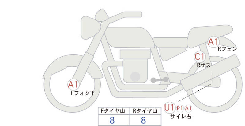 | Нижняя часть передней вилки | царапина <1> |