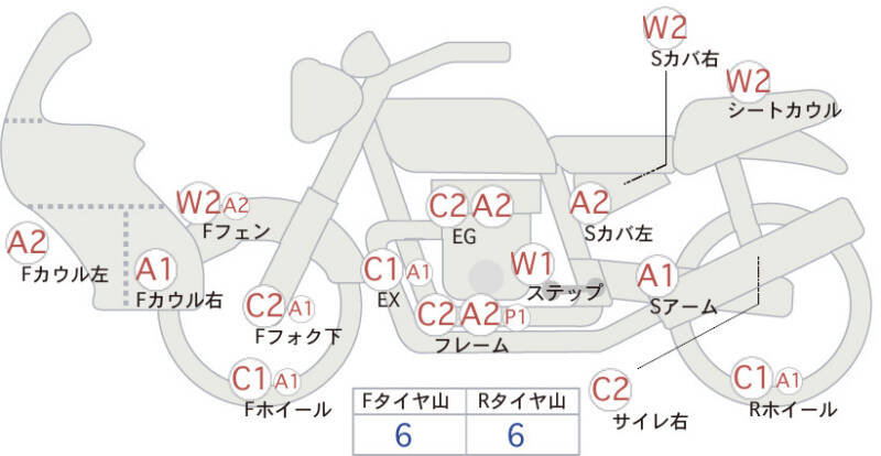 Красным маркером на схеме отмечаются места косметических повреждений.
