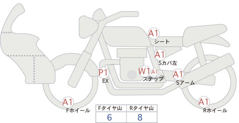 | Переднее колесо | царапина <1> |