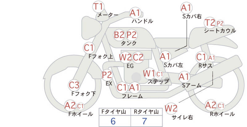 | Обтекатель сиденья | порвано, трещина <2>; царапины, необходима подкраска <2> |