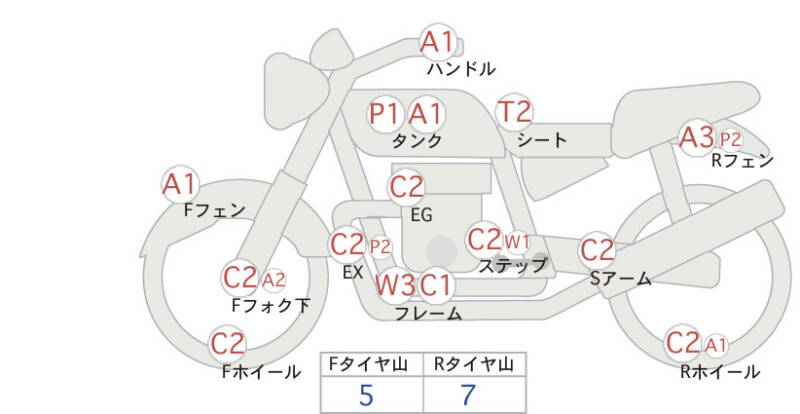 Красным маркером на схеме отмечаются места косметических повреждений.