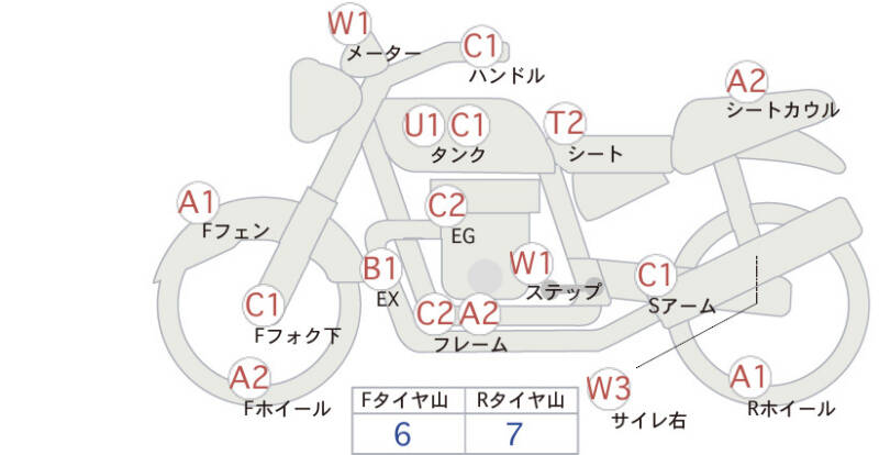 Красным маркером на схеме отмечаются места косметических повреждений.