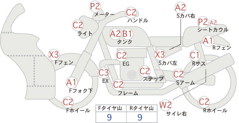 | Обтекатель сиденья | царапины, необходима подкраска <2>; царапина <2> |