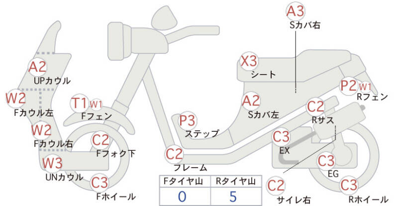 Красным маркером на схеме отмечаются места косметических повреждений.