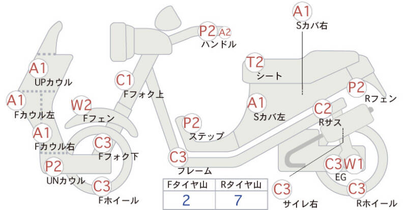 | Переднее крыло | царапины, потертость <2> |