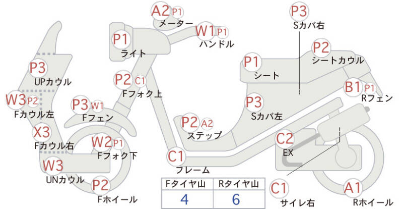 Красным маркером на схеме отмечаются места косметических повреждений.