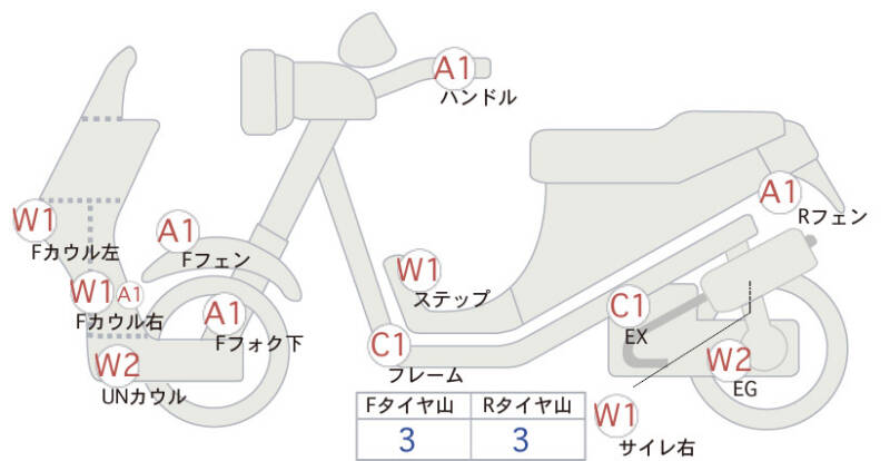 | Переднее крыло | царапина <1> |