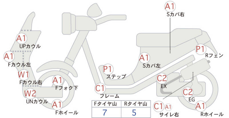 | Переднее колесо | царапина <1> |