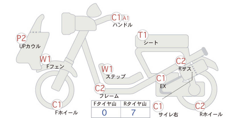 Красным маркером на схеме отмечаются места косметических повреждений.