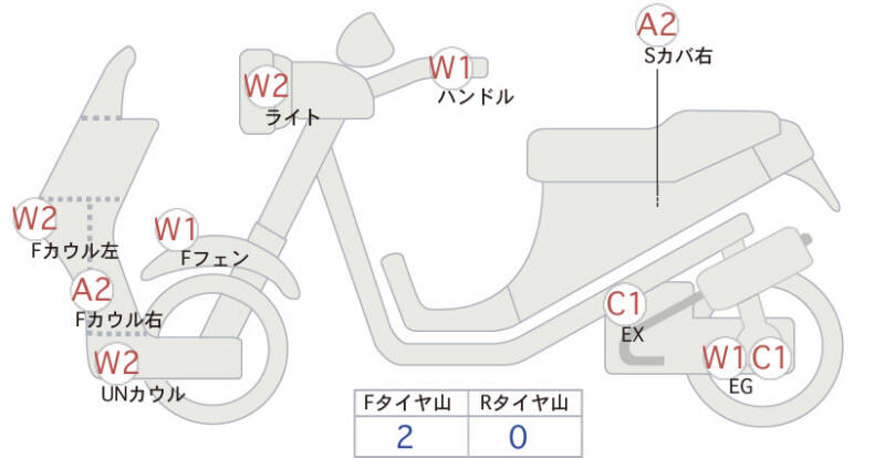 | Левая часть переднего обтекателя | царапины, потертость <2> |