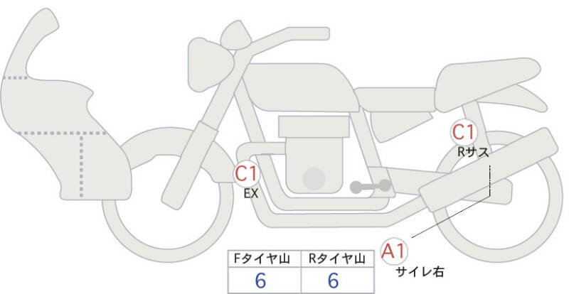 Красным маркером на схеме отмечаются места косметических повреждений.