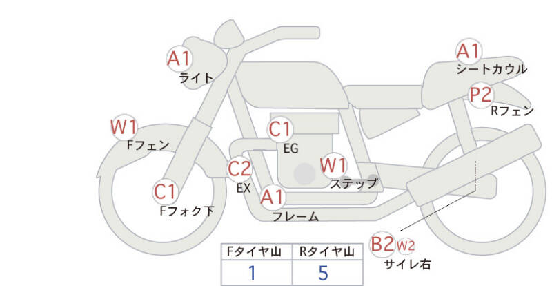 Красным маркером на схеме отмечаются места косметических повреждений.