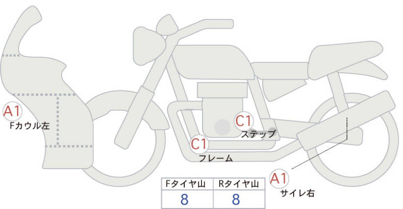 Красным маркером на схеме отмечаются места косметических повреждений.