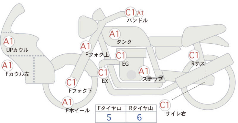 Красным маркером на схеме отмечаются места косметических повреждений.